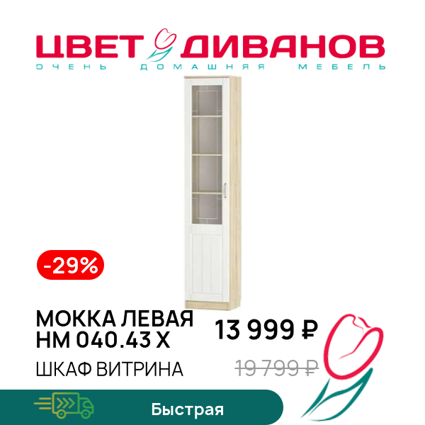 Шкаф витрина Мокка левая НМ 040.43 Х